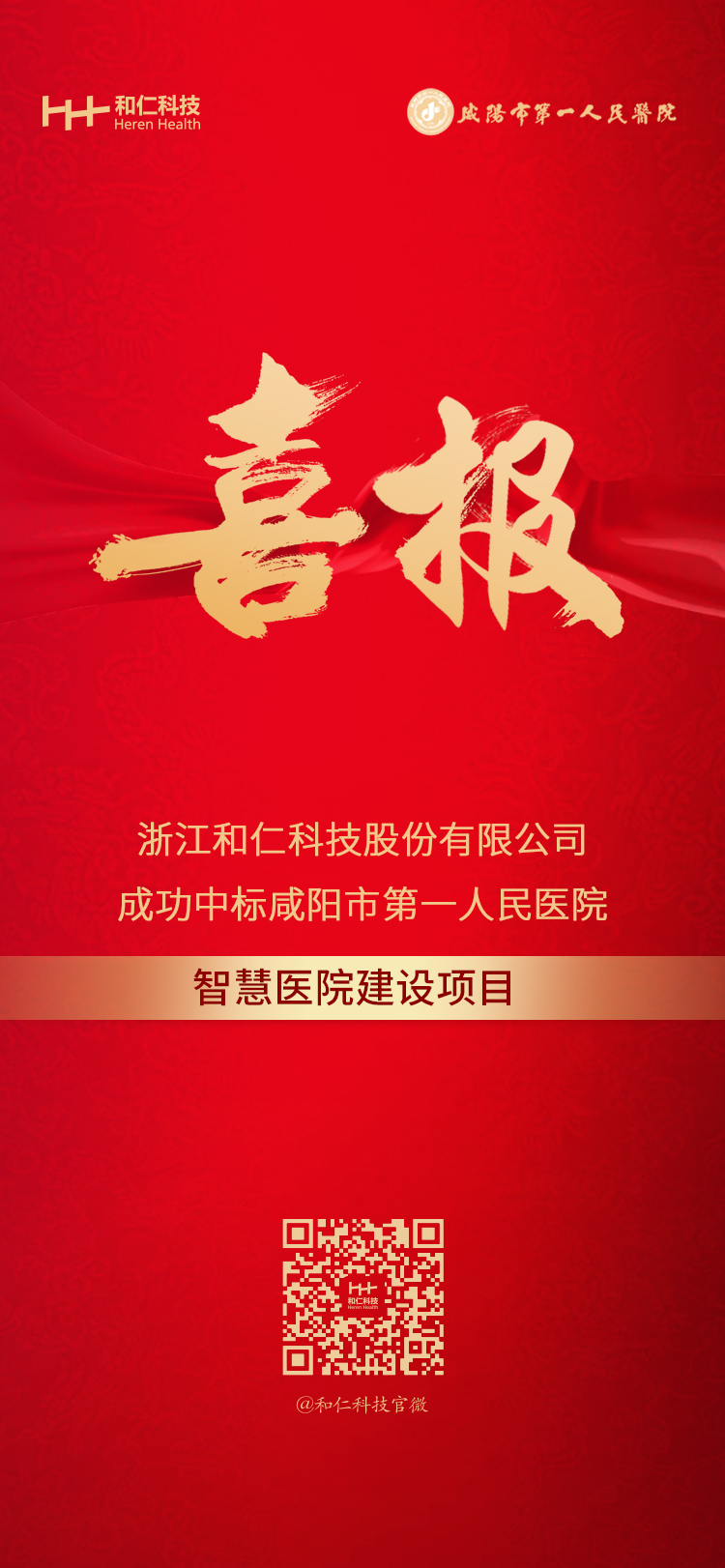 繼樂清市人民醫院中標以來,又傳來佳績。近日,浙江和仁科技股份有限公司(以下簡稱“和仁科技”)成功中標陜西省咸陽市第一人民醫院智慧醫院建設項目,中標金額:3299萬元人民幣。