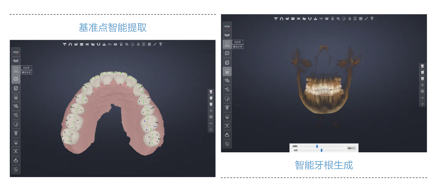 此外,面向口腔??祁I域,基于AI賦能患者就診全流程智慧服務、全生命周期健康管理等場景,并針對傳統牙科診療中的基準點標注、牙根設計等環節的提質增效進行了重點研發攻關,實現在基準點標準環節僅需25秒完成全頜定位,準確率超過98%,并基于雙重校驗機制確保輪廓繪制的亞毫米級精度,臨床一致性達行業領先水平。