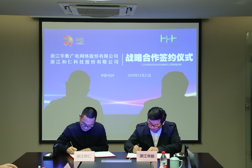 11月21日,浙江和仁科技股份有限公司(以下簡稱“和仁科技”)與浙江華數廣電網絡股份有限公司(以下簡稱“浙江華數”)圍繞智慧城市建設達成戰略合作關系,并于白馬湖數字電視產業園舉行了簽約儀式。雙方將在智慧城市與智慧醫療領域、針對智慧小區、智慧醫院、健康服務和醫療保險等方面展開深入合作,共同打造符合國家政策和行業特點的智慧城市解決方案。和仁科技高級副總裁傅烈勇、副總裁胡斌等公司領導出席簽約儀式。