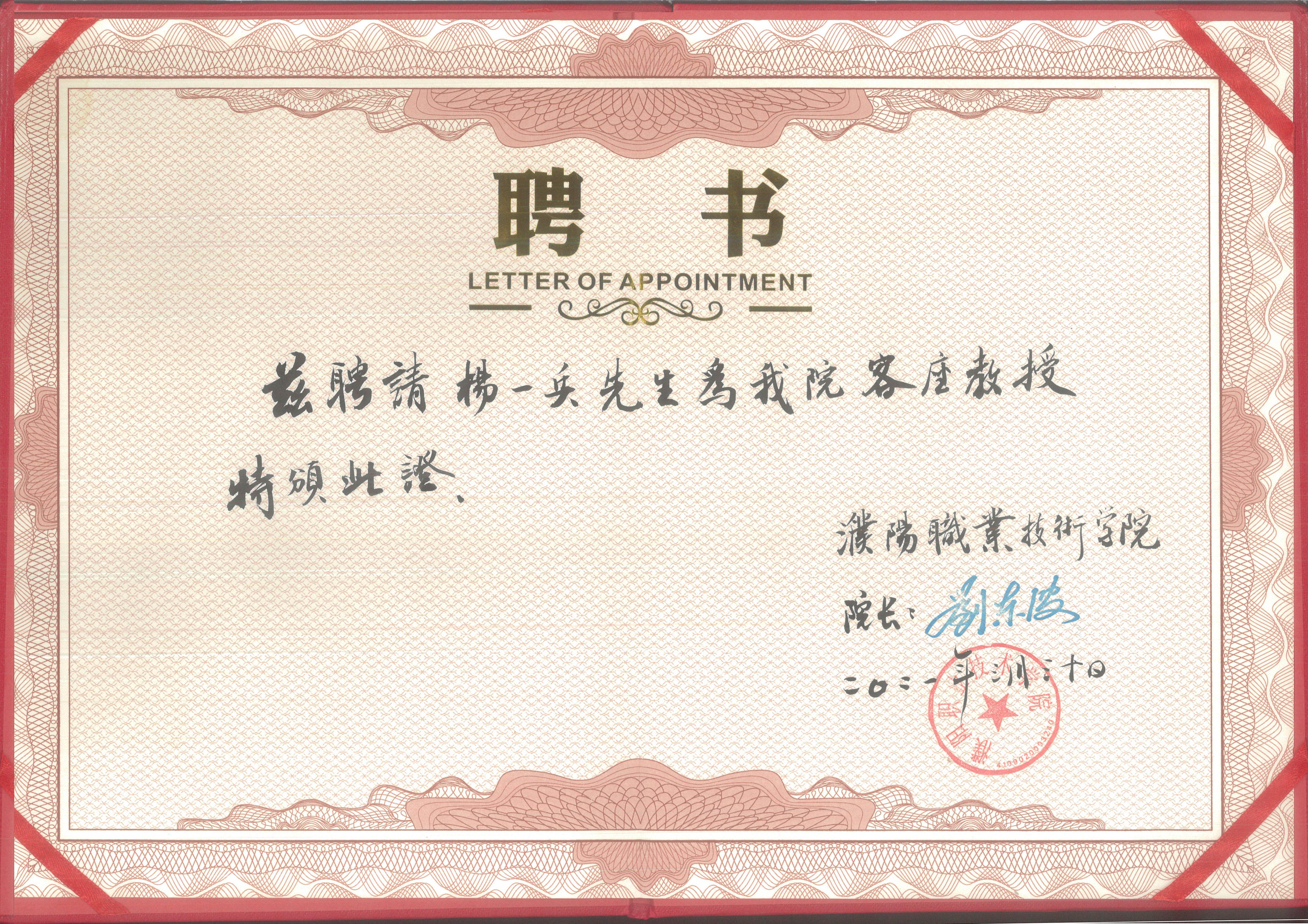和仁科技董事長楊一兵博士受邀擔任濮陽職業技術學院客座教授
